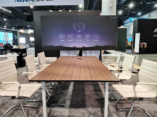 受全球疫情的持續影響,遠程辦公、視頻會議、在線學習等概念已深深滲入人們的工作、學習與生活之中,全球市場對交互顯示產品的需求持續旺盛。本次展會上,邁銳光電智慧會議一體機憑借多功能智能集成一體化設計理念賺足了眼球。產品內置頂級揚聲設備和安卓智能系統,集高清顯示、無線投屏、遠程會議等多功能于一體,投屏時支持四分屏同時顯示,數據對比清晰直觀,讓開會演示與信息交流的體驗更逼真,“刷新”了參展觀眾對LED顯示屏的認知。